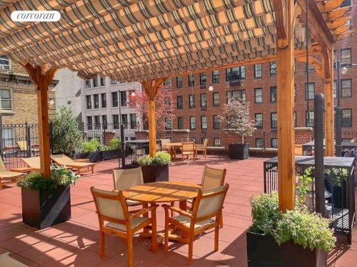 A home for outdoor space lovers on one of the most beautiful blocks in Greenwich Village!\nThis 1 Bedroom, 1.5 bathroom duplex features multiple walls of south-facing, sun-flooded windows and a stunning private roof terrace. \nThe large square living room is anchored by a wall of 7 foot high windows which span the entire room. The views across the street frame the facades of two architecturally striking pre-war buildings.