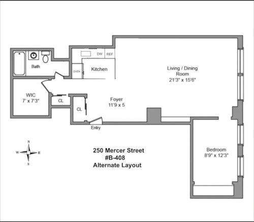 X-large (1,100 sq.ft.) 1 Bedroom 1 Bathroom home located in the full service Greenwich Village co-op, the Stewart House. Upon entering the home, you’re immediately impressed with the grand scale of the room and the wall of windows (fitted with soundproof citi-windows) streaming with beautiful western light into the living room. The entry foyer is extremely generous, allowing you flexibility to create an office or additional ...