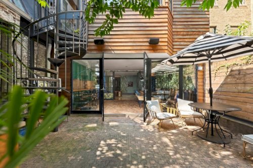 With 29 feet of frontage, including a curb cut, this fabulous 9,000 square foot home features double height ceilings, six outdoor spaces, a private covered parking spot, and an elevator that services the basement to roof deck. Step in off of charming Downing Street to an "open air" garage, that could be used as a garage, a front garden or party space too, with storage. Beyond the garage is the ground floor duplex that could a ...